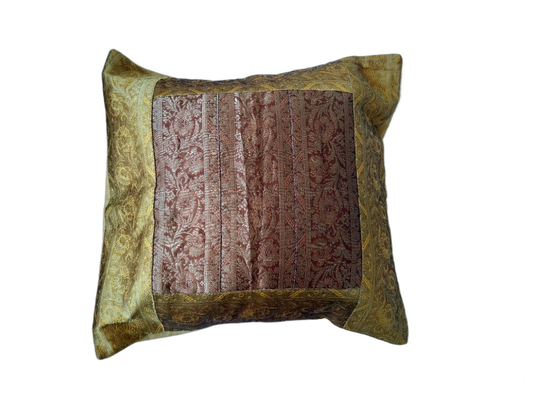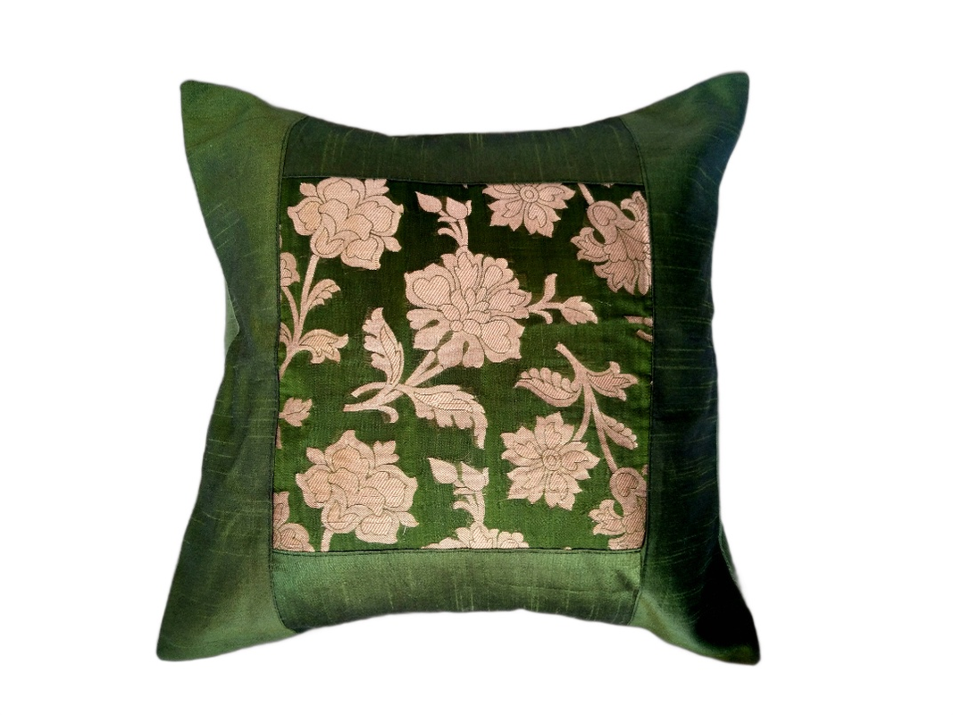 Green Silk Zari Brocade 16 ⨉ 16 Cushion Pillow Cover, Sofa Cushion Cover, Bedding Cushion Cover, Cotton Cushion Cover, Decorative Pillow set of 5