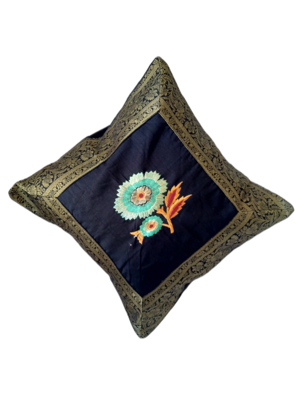 Black Silk Embroidery Bordered Pillow Cases Size 16 ⨉ 16, Sofa Cushion Cover, Bedding Cushion Cover, Cotton Cushion Cover, Decorative Pillow set of 5