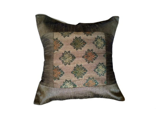 Beige Silk Zari Brocade 16 ⨉ 16 Cushion Pillow Cover, Sofa Cushion Cover, Bedding Cushion Cover, Cotton Cushion Cover, Decorative Pillow