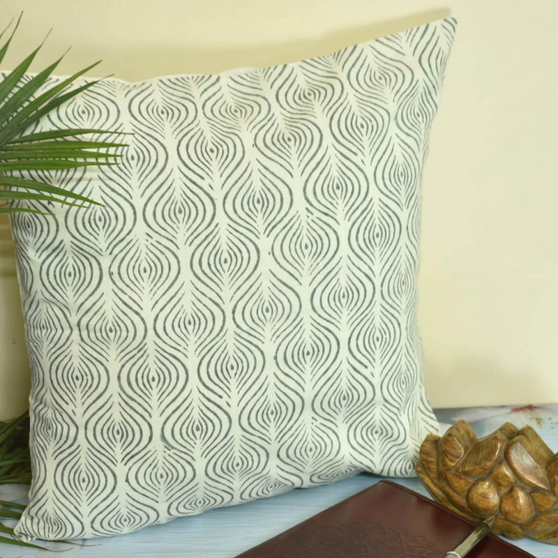 Hand Block Cotton Grey-White Cushion Cover |Farmhouse Pillow Cover|Boho |Floral Throw pillow cover